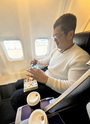‰H“c‚©‚ç‘啪‹ó`‚ÉŒü‚©‚¤‹@“à‚ÅA ‚Ü‚¾—£—¤‚µ‚Ä‚¢‚È‚¢ƒ^ƒCƒ~ƒ“ƒO‚ÅA ƒVƒEƒ}ƒC•Ù“–‚ðH‚׎n‚ß‚él‚Á‚ÄA