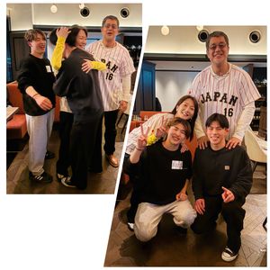 今日貼り付けたのは、イベント終了後の打ち上げショット。 WBCのレプリカユニフォームをプレゼントしていただき、超絶😍有頂天😍な田向井を‥。