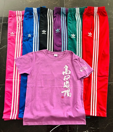 明日着用のDKCスタッフTシャツを前に‥ 向井自慢(?)のジャージレパートリーを並べてみました🤣